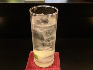 今回はまず「ジントニック」を注文。その爽やかな味わいを楽しみつつ店主との会話も進みました。