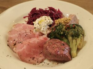 まさにちょい飲みにはおすすめの一皿でこの日は「豚ハム・カマンベールムース・レバーコンフィ・ブロッコリーのアーリオオーリオ・パテドカンパーニュ・赤キャベツのマリネ」と盛りだくさん。