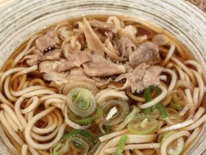 この「かき揚げ天たま」とともに店のイチ押しが「肉そば」でこちらも人気のようです。